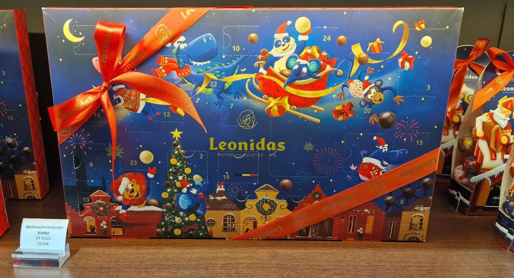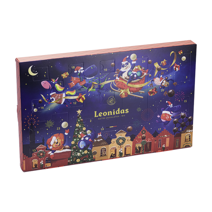 Entdecken Sie unseren neuen Adventskalender für Kinder! Unsere fröhlichen Tiere und magischen Wesen haben sich bereits in ihre schönsten Outfits und festlichen Accessoires gekleidet. Hinter jedem Türchen wartet eine leckere Schokoladenüberraschung, und auf der Rückseite des Kalenders finden sich lustige Spiele. Noch nie war das Warten auf Weihnachten so spielerisch und köstlich!