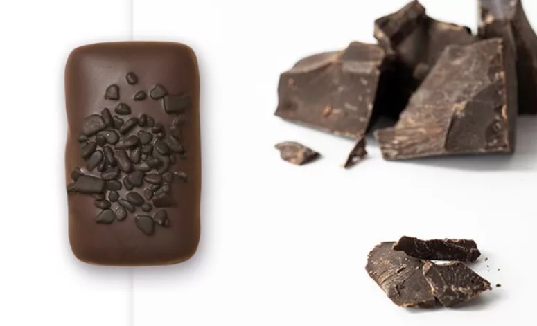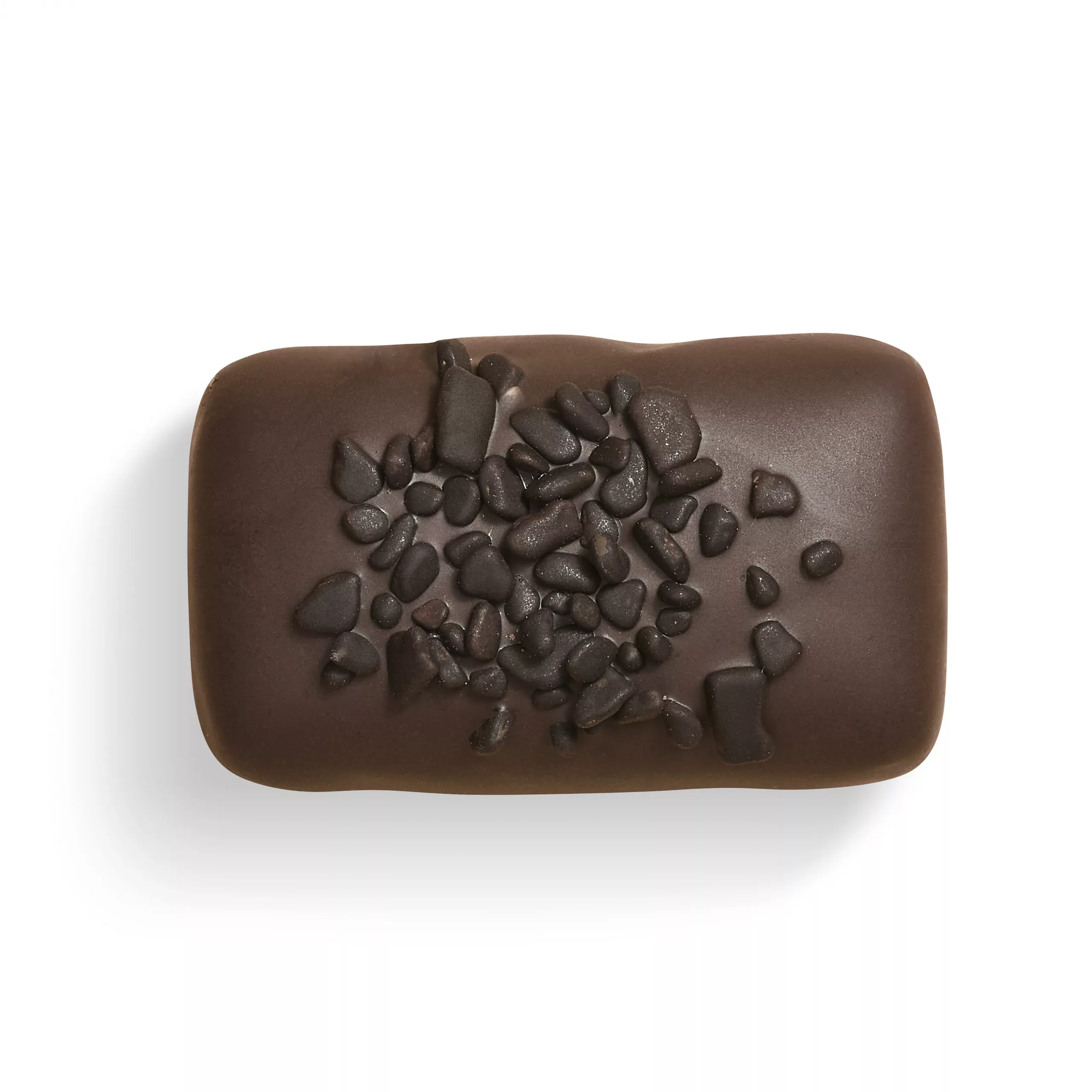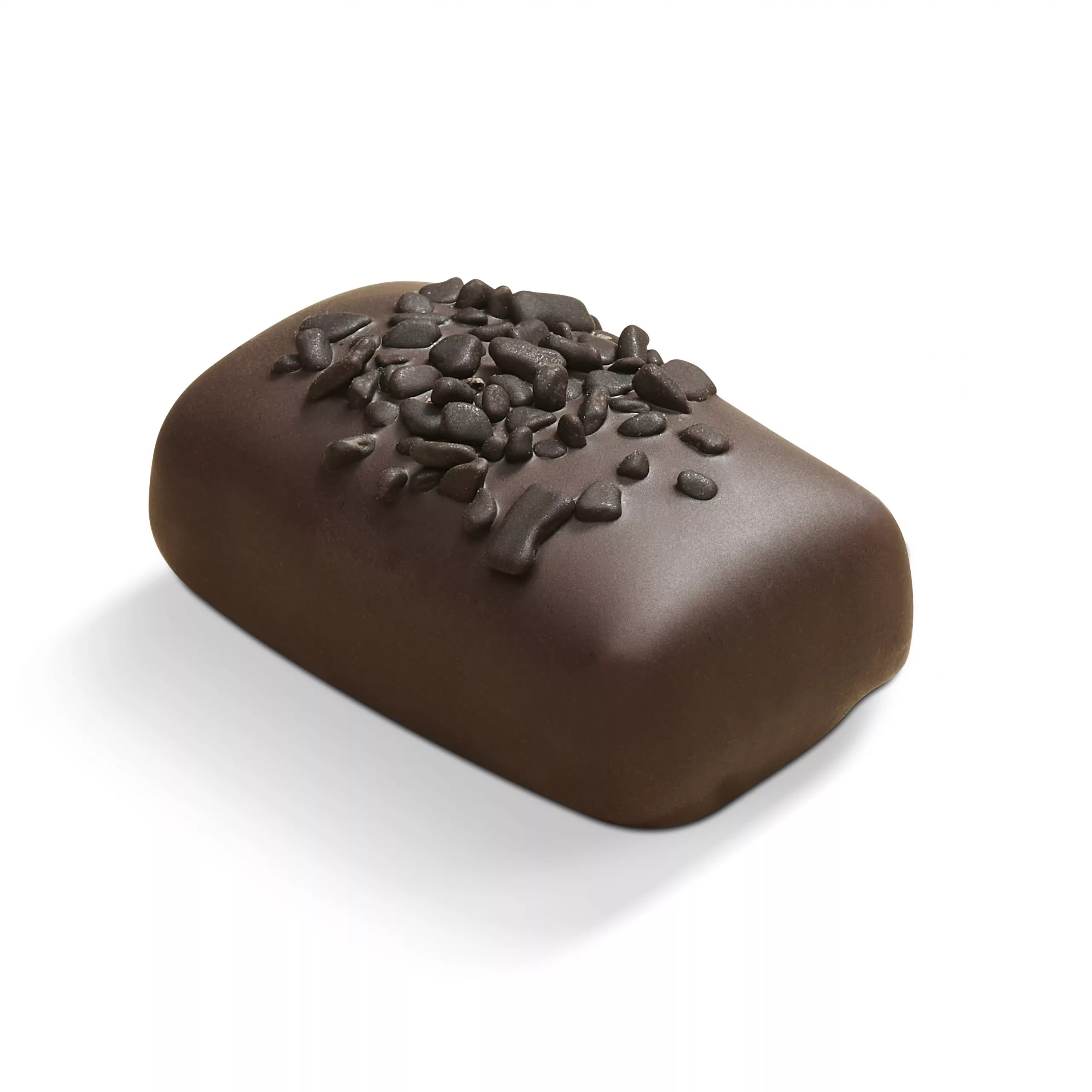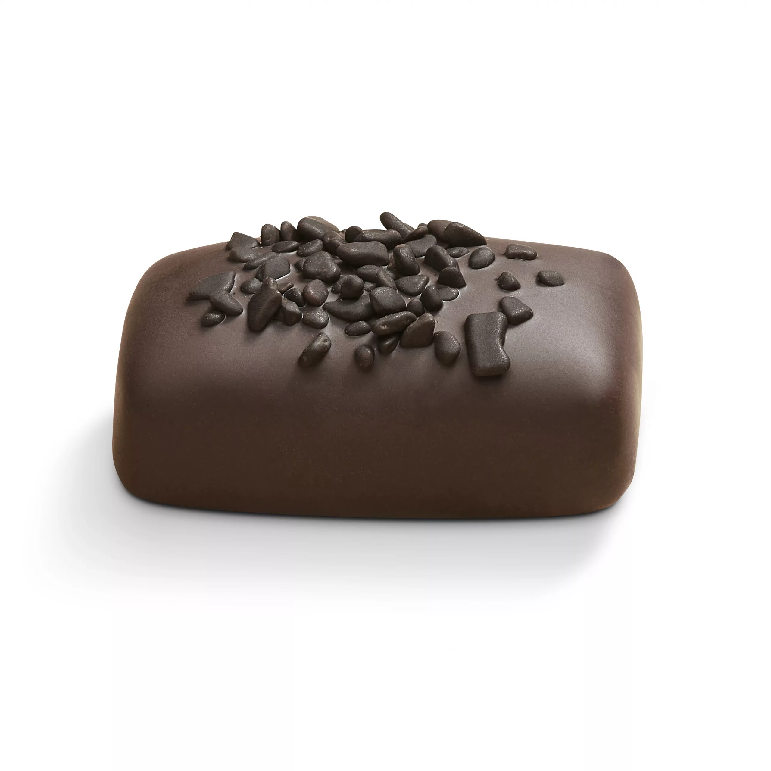 Ein intensiver Klassiker für alle, die dunkle Schokolade wirklich schmecken wollen: außen ein knackiger Überzug aus Zartbitterschokolade, innen eine cremige Buttercreme mit deutlicher Kakaonote – getragen von einem feinen Nougatbett mit Haselnuss.